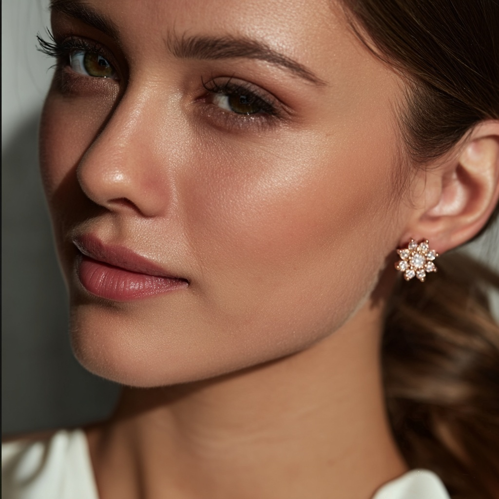 The petals are set with premium high-grade cubic zirconia stones — seven per stud — creating a soft, multidimensional sparkle that shines beautifully from every angle.