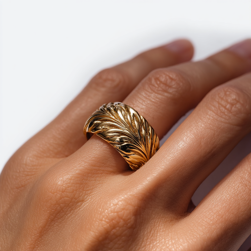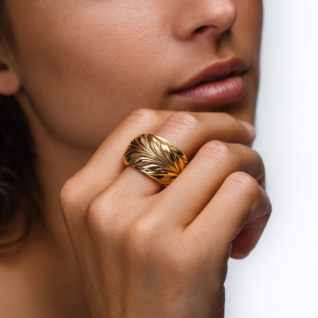 The Aurea Ring channels the radiance of sunlight into a flowing, golden form.
