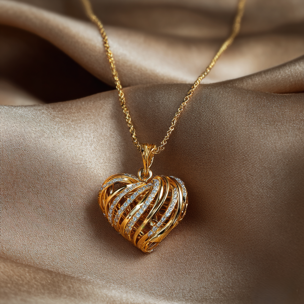 Elegant, romantic, and richly sculptural — the Cuore Intrecciato Necklace captures the warmth of golden light inside an openwork heart silhouette.